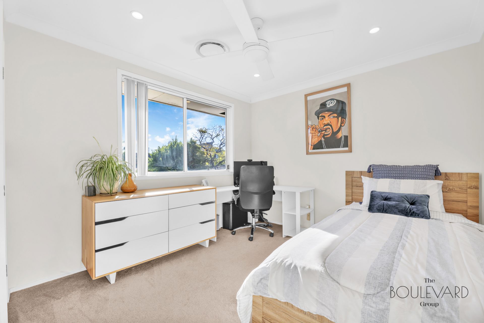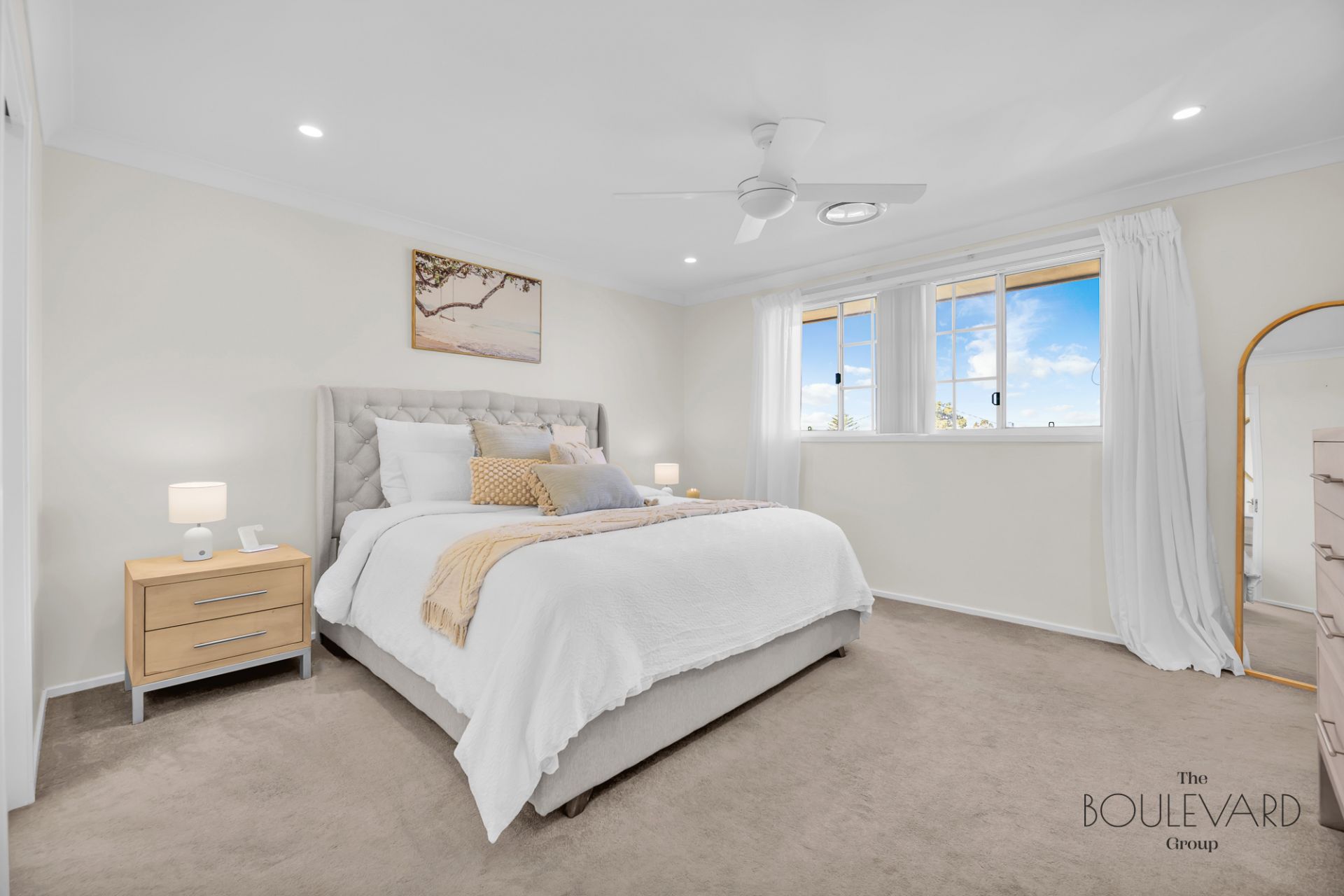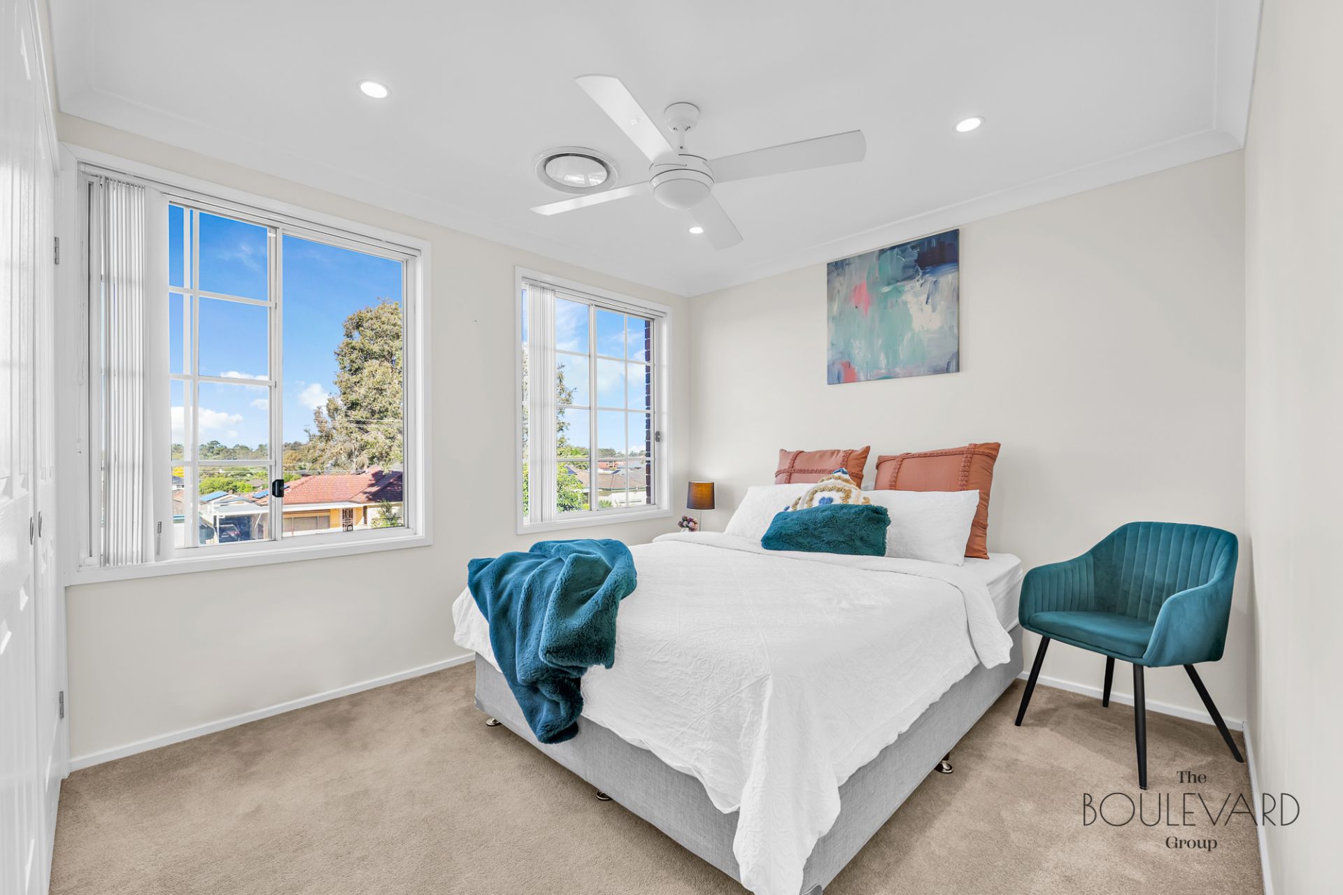 The property showcases high-quality hybrid timber floating boards on the bottom floor, combining luxury with practicality, while the top floor is adorned with plush carpet, adding a layer of comfort to the bedrooms. For added convenience, the home includes a ducted vacuum system, making house maintenance effortless and efficient.