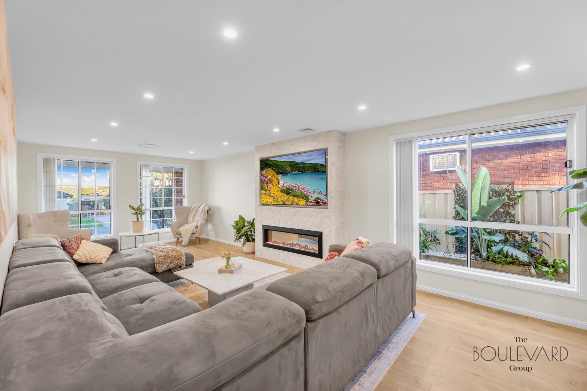The heart of this home is the gourmet kitchen, where stunning stone benchtops provide a perfect blend of beauty and functionality. With modern appliances and sleek cabinetry, it's an ideal space for both everyday meals and special occasions. The lounge area enhances the home's appeal with its inviting fireplace, creating a cozy atmosphere perfect for relaxing.