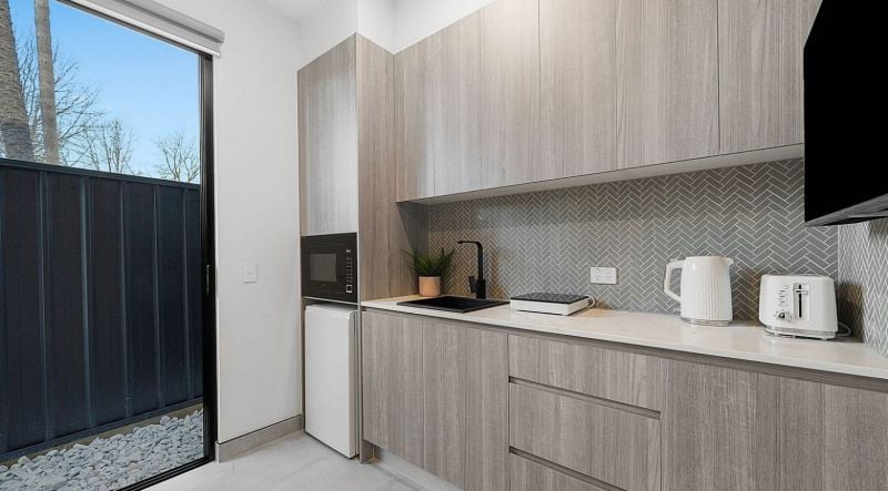 Each studio comes equipped with its own modern bathroom, kitchenette with microwave oven and storage space, spacious fully tiled living space, air conditioning and built in wardrobe.