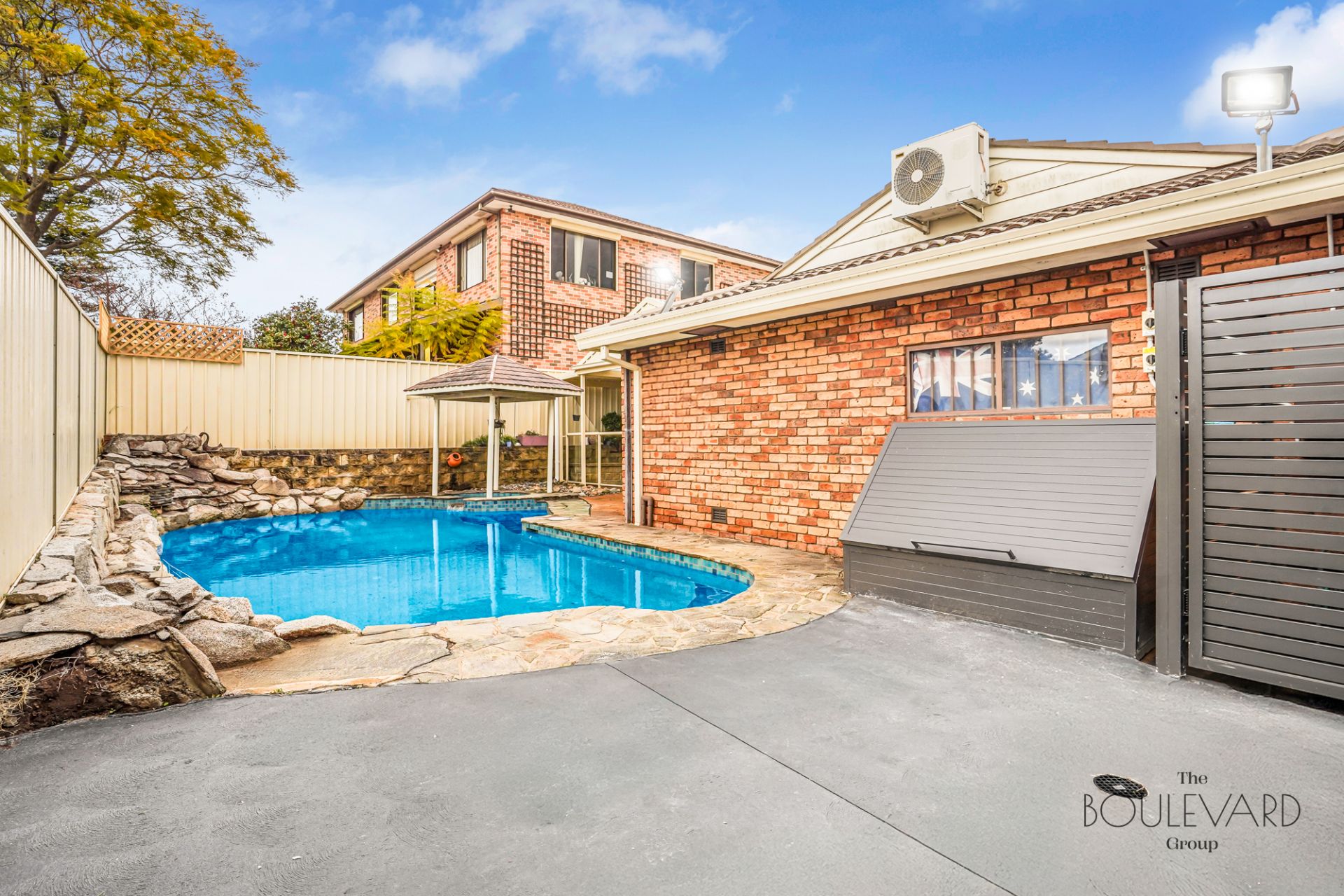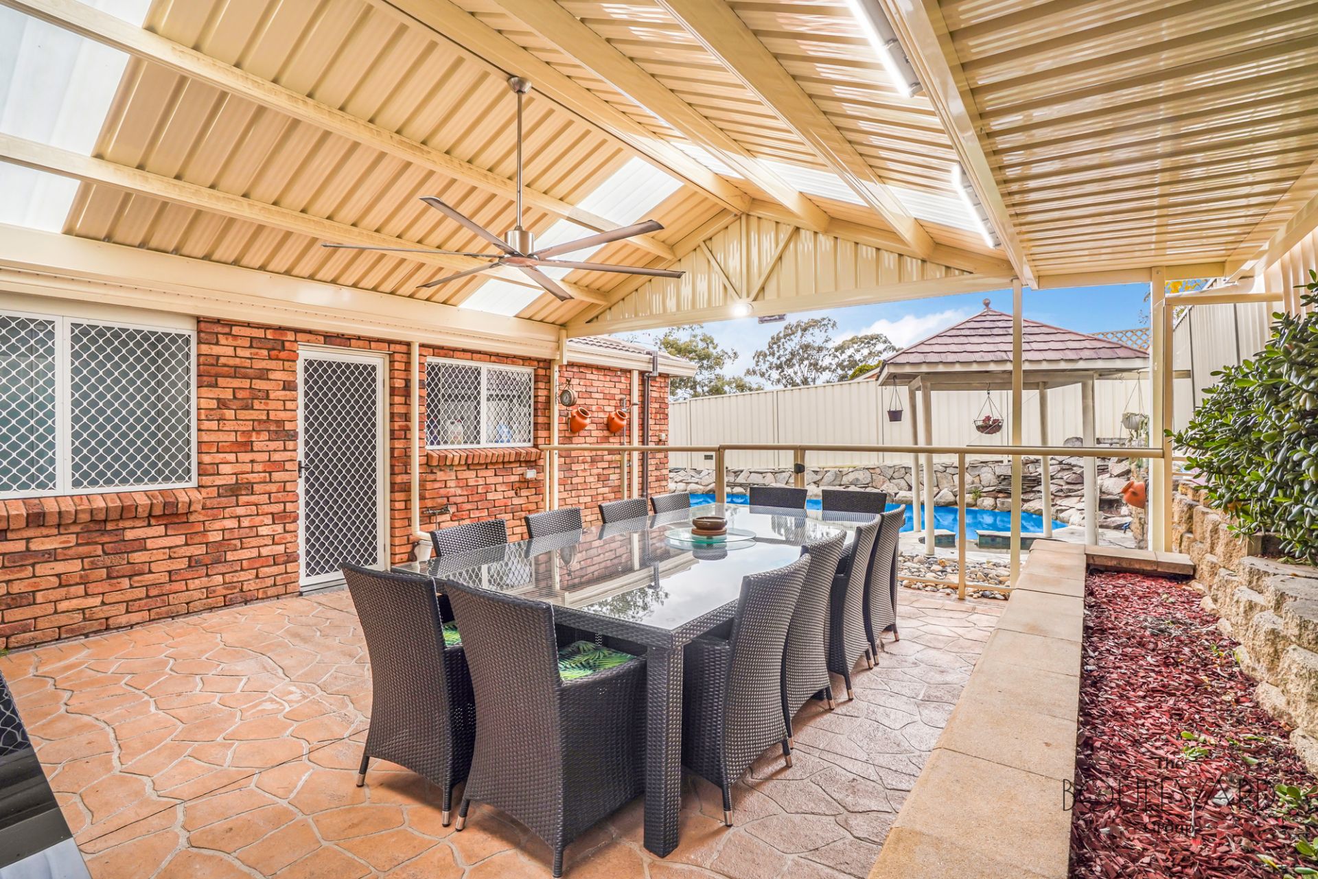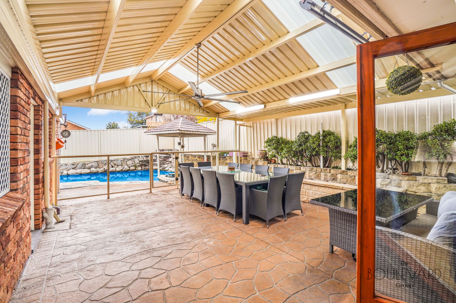 - Covered entertaining area + inground pool
