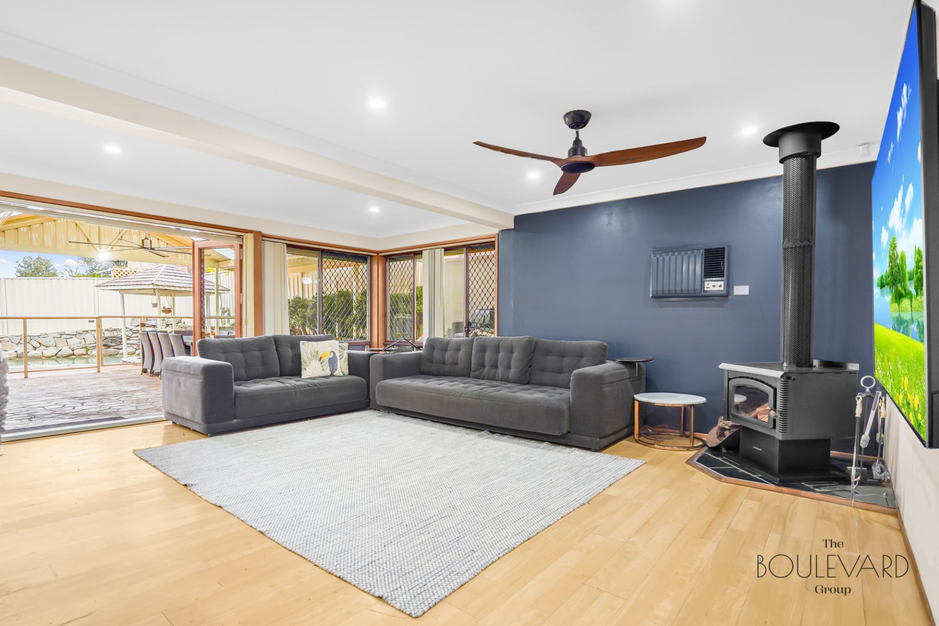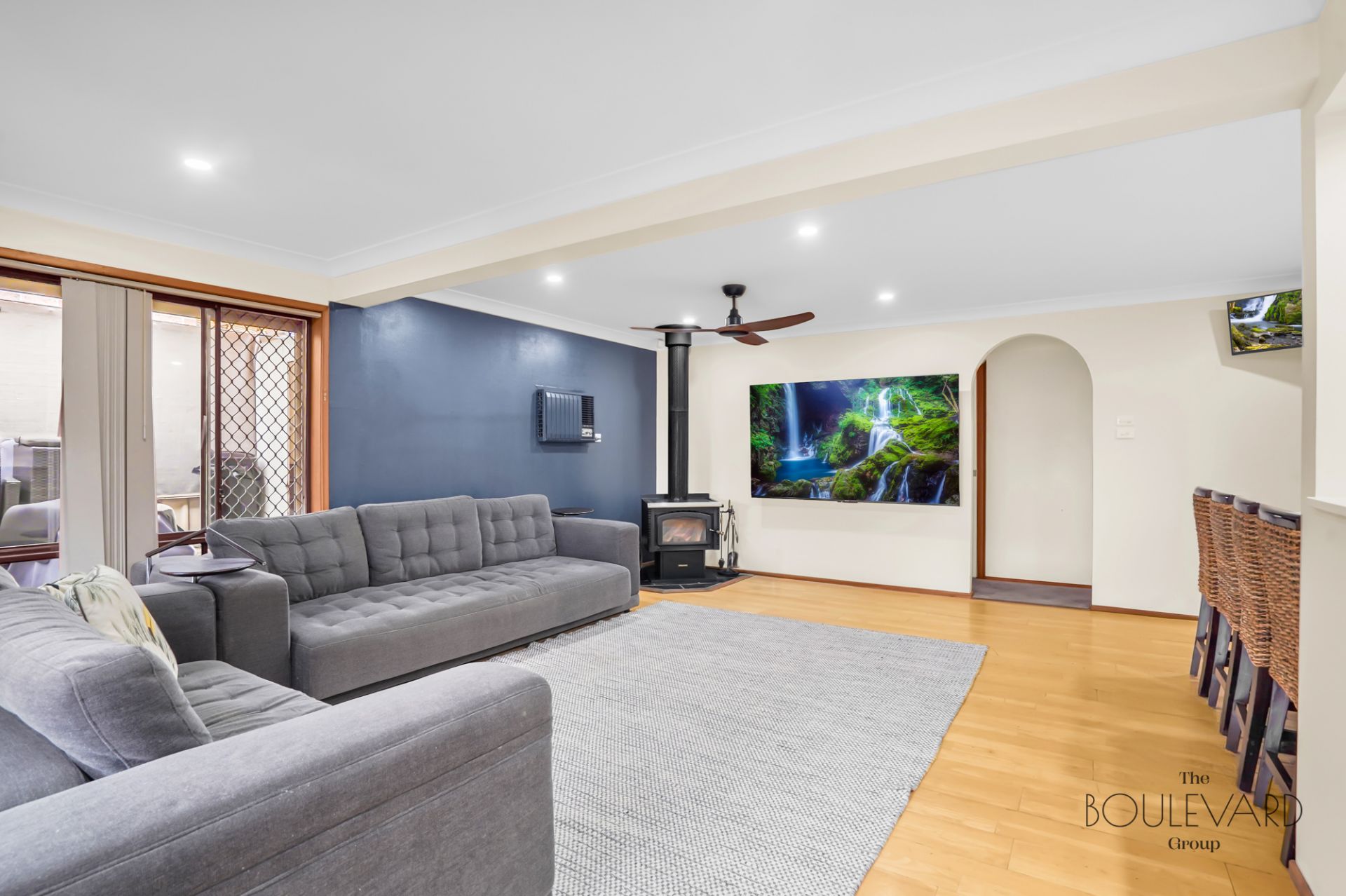 - Open-plan living, split system air con & fireplace