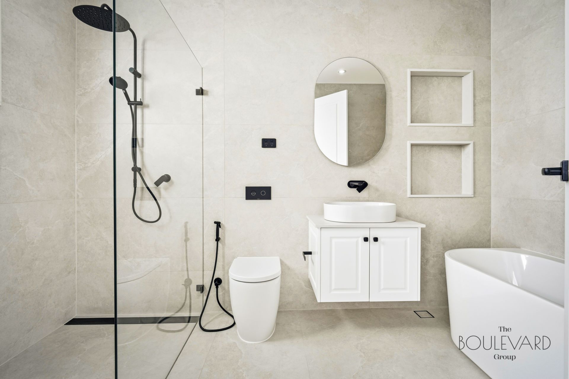 The layout has been curated for elevated modern living. The main level hosts a refined guest bedroom and full bathroom, while the upper floor unveils four expansive bedrooms, including two palatial master suites. Each master indulges with exquisitely crafted custom wardrobes and sumptuous ensuite bathrooms adorned with imported full-height tiling and premium fixtures. One suite is further enhanced with a private balcony-a serene sanctuary to unwind in absolute tranquility.